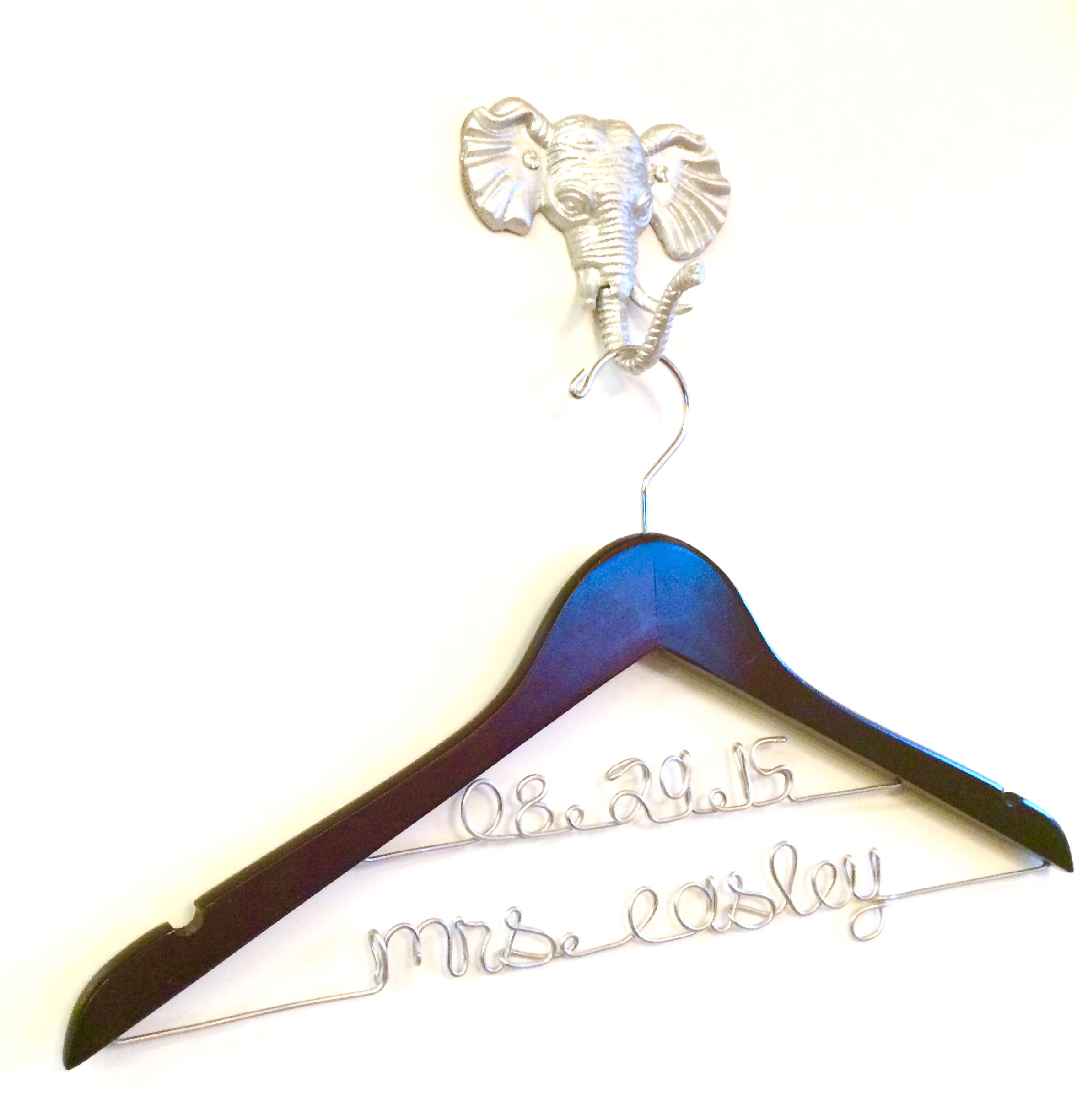 This custom wedding dress hanger is the perfect way to display your gown on your wedding day! The hanger includes 2 lines of personalization - 8 characters max (including spaces and periods) on the top line, and 18 character max on the bottom line.