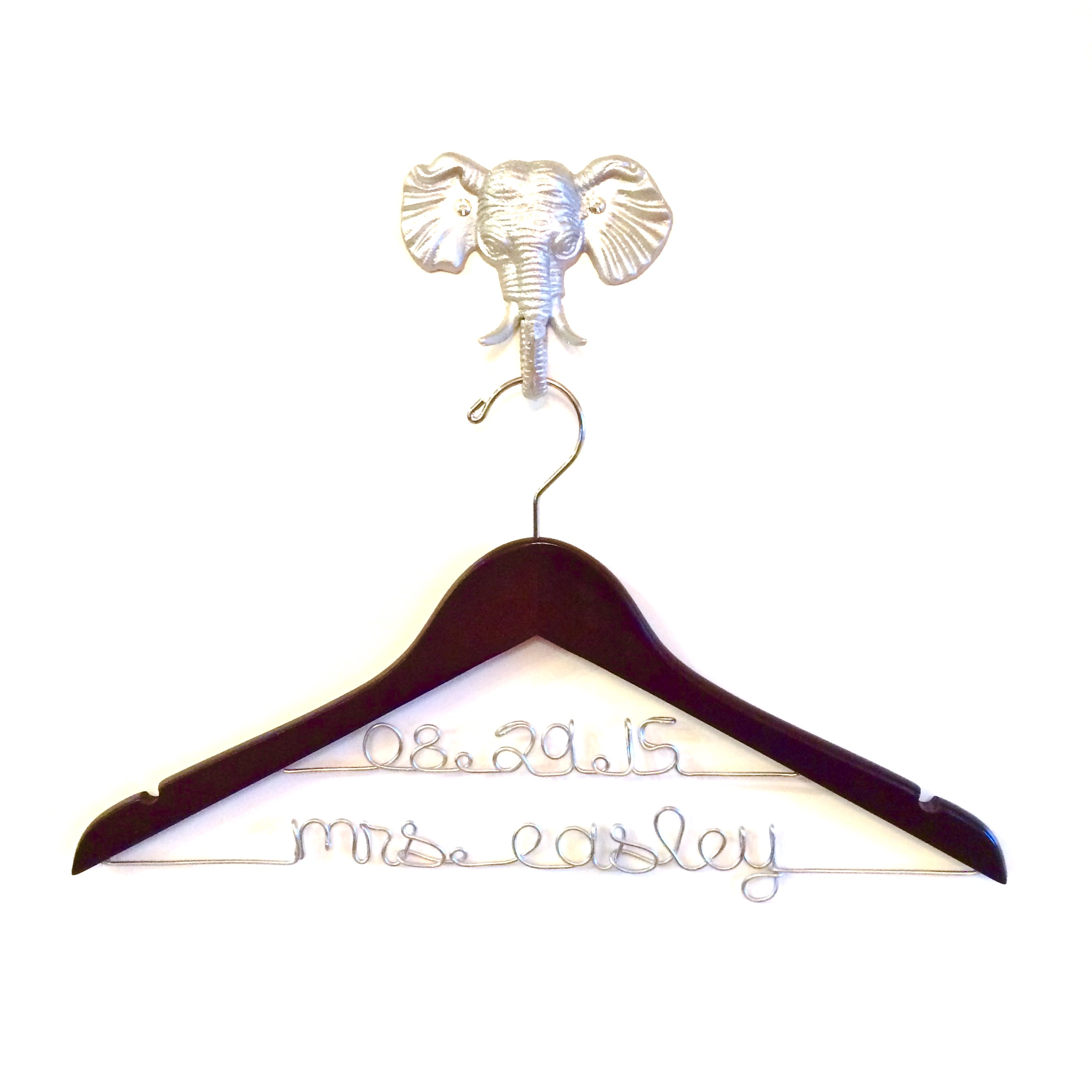 Please include the personalization details you would like in the notes to seller box at checkout. All lettering is done in lowercase unless specifically requested otherwise. This listing is for a walnut/mahogany colored hanger.