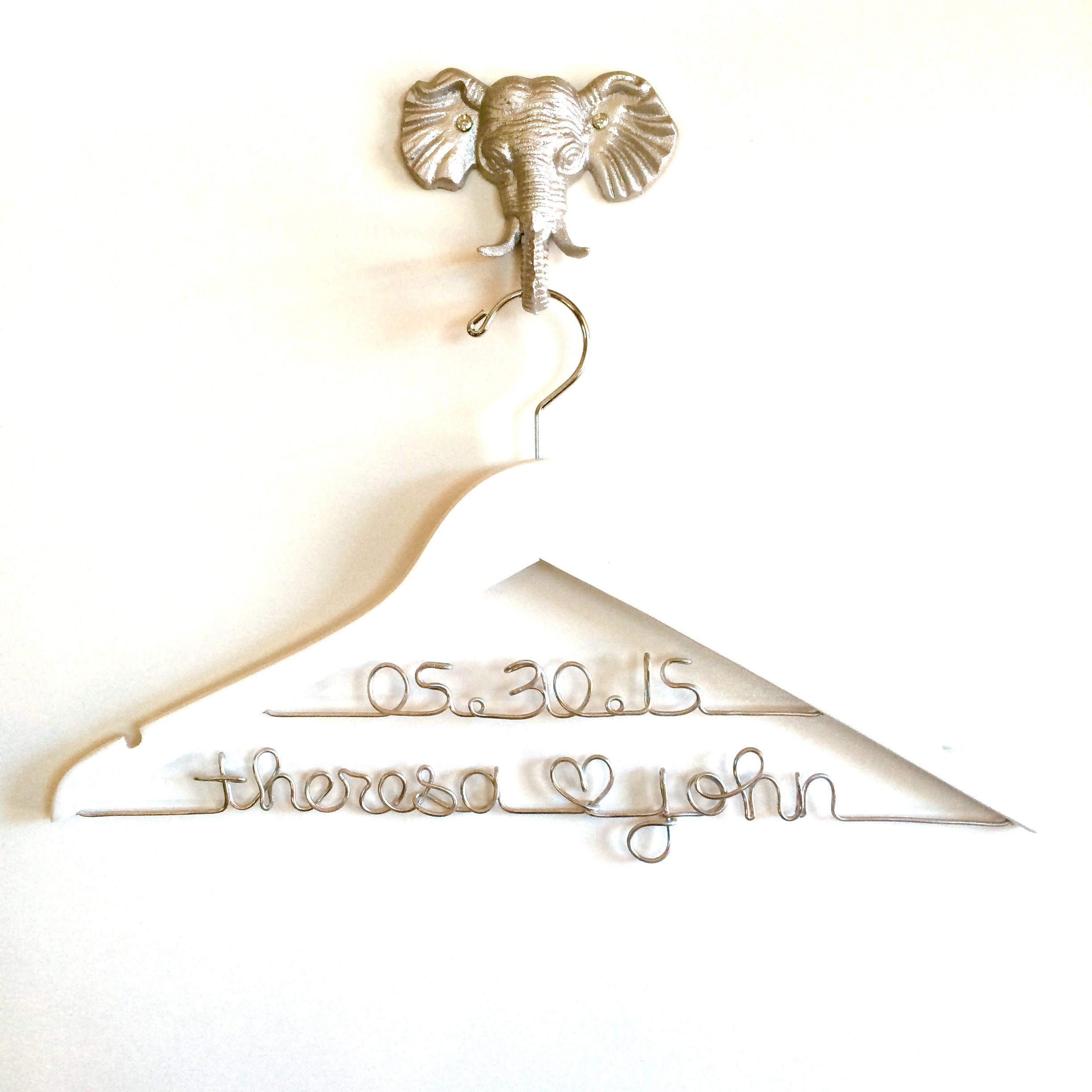 This custom wedding dress hanger is the perfect way to display your gown on your wedding day! The hanger includes 2 lines of personalization - 8 characters max (including spaces and periods) on the top line, and 18 character max on the bottom line.